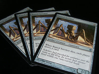Uncommon cards Runed Servitor are in Mint, unplayed condition, straight from the booster pack. V